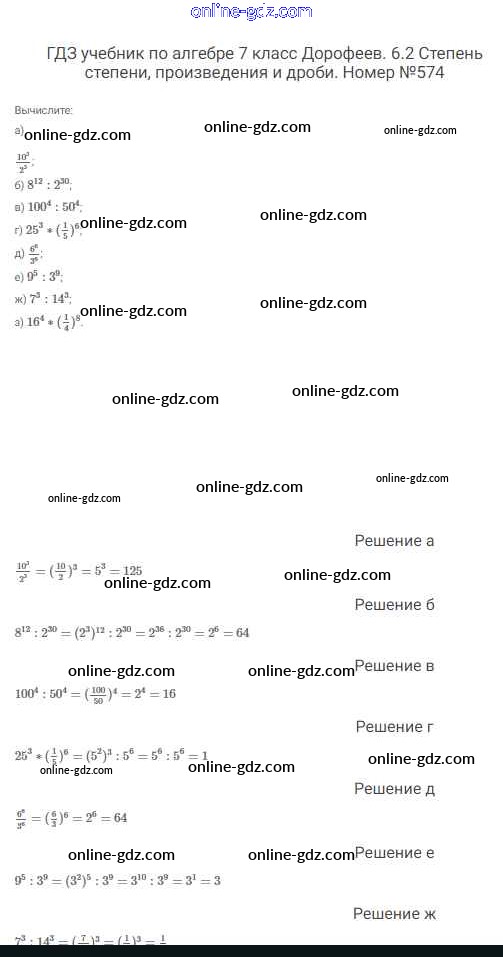 Готовые домашние задания по Алгебре за 7 класс Учебник Дорофеев, Суворова Академический школьный учебник 2020 - Упражнения 574