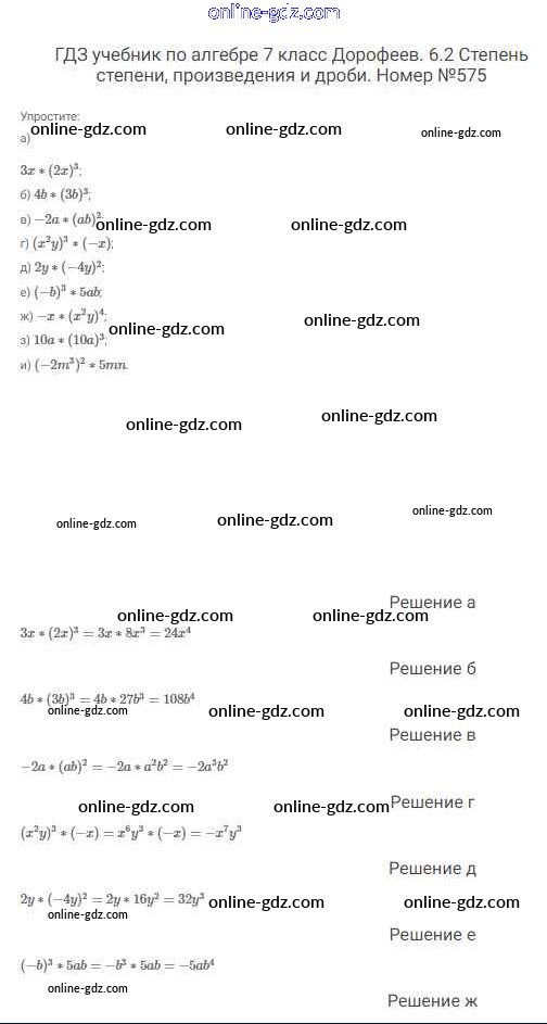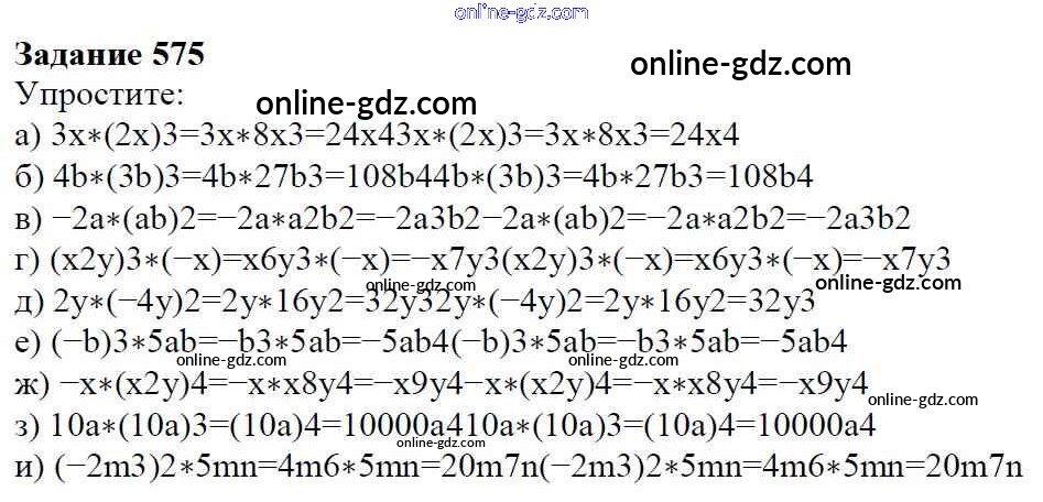 Готовые домашние задания по Алгебре за 7 класс Учебник Дорофеев, Суворова Академический школьный учебник 2020 - Упражнения 575