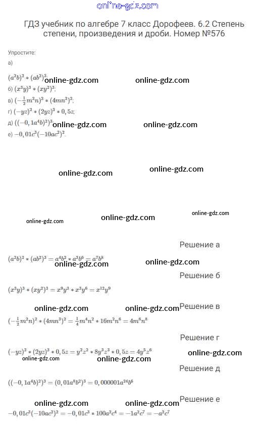 Готовые домашние задания по Алгебре за 7 класс Учебник Дорофеев, Суворова Академический школьный учебник 2020 - Упражнения 576