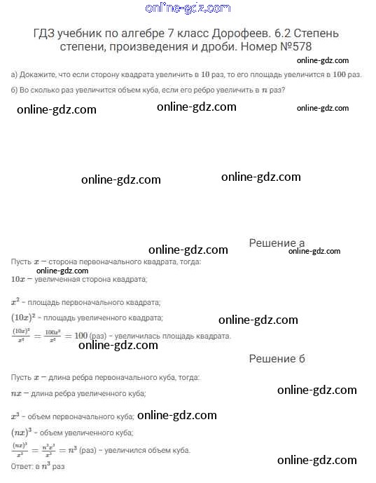 Готовые домашние задания по Алгебре за 7 класс Учебник Дорофеев, Суворова Академический школьный учебник 2020 - Упражнения 578
