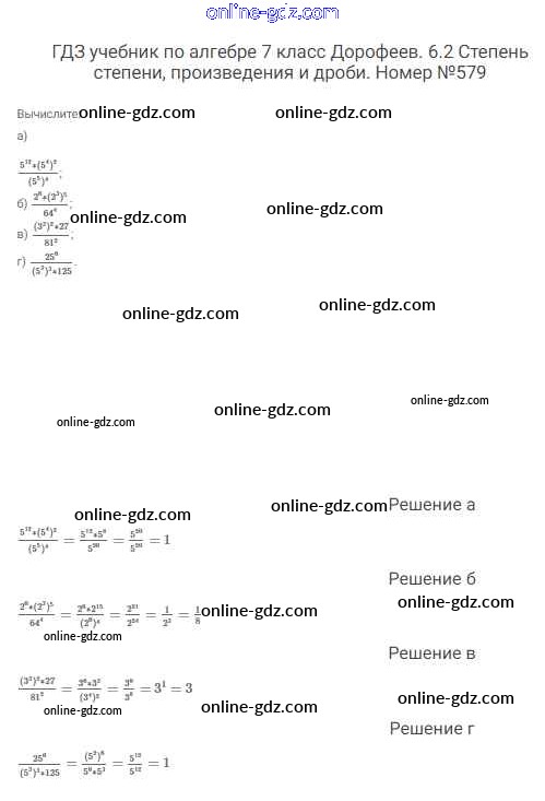 Готовые домашние задания по Алгебре за 7 класс Учебник Дорофеев, Суворова Академический школьный учебник 2020 - Упражнения 579
