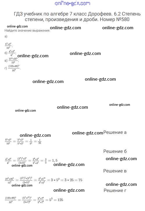 Готовые домашние задания по Алгебре за 7 класс Учебник Дорофеев, Суворова Академический школьный учебник 2020 - Упражнения 580