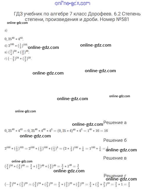 Готовые домашние задания по Алгебре за 7 класс Учебник Дорофеев, Суворова Академический школьный учебник 2020 - Упражнения 581