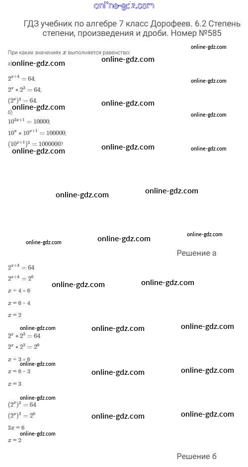 Готовые домашние задания по Алгебре за 7 класс Учебник Дорофеев, Суворова Академический школьный учебник 2020 - Упражнения 585