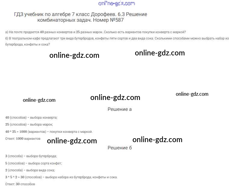 Готовые домашние задания по Алгебре за 7 класс Учебник Дорофеев, Суворова Академический школьный учебник 2020 - Упражнения 587