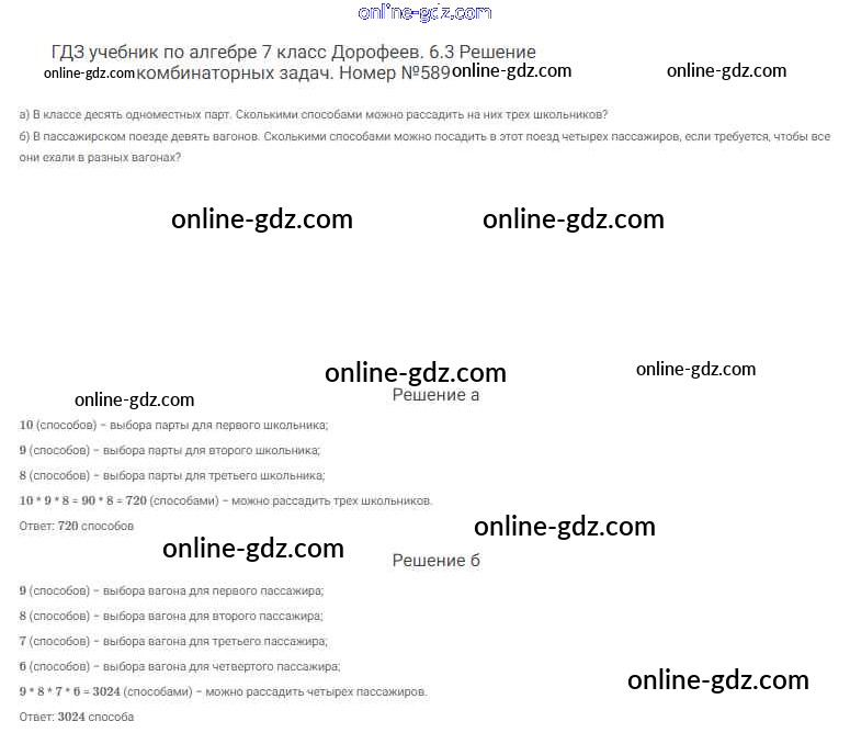 Готовые домашние задания по Алгебре за 7 класс Учебник Дорофеев, Суворова Академический школьный учебник 2020 - Упражнения 589