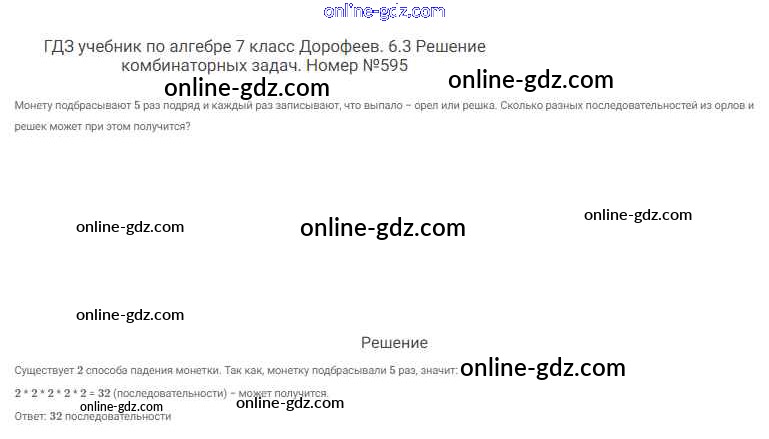 Готовые домашние задания по Алгебре за 7 класс Учебник Дорофеев, Суворова Академический школьный учебник 2020 - Упражнения 595