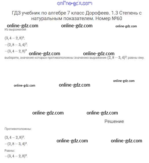 Готовые домашние задания по Алгебре за 7 класс Учебник Дорофеев, Суворова Академический школьный учебник 2020 - Упражнения 60