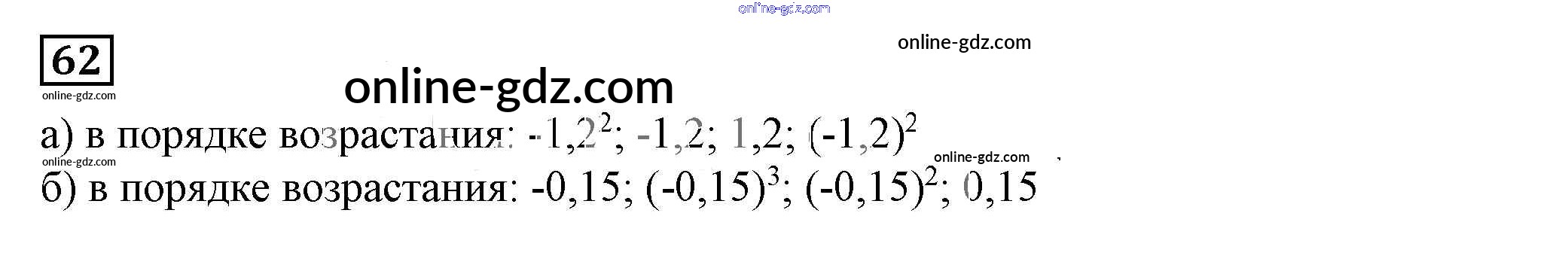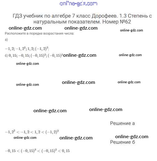 Готовые домашние задания по Алгебре за 7 класс Учебник Дорофеев, Суворова Академический школьный учебник 2020 - Упражнения 62