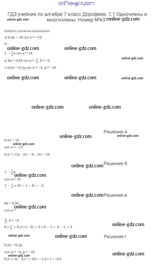 Готовые домашние задания по Алгебре за 7 класс Учебник Дорофеев, Суворова Академический школьный учебник 2020 - Упражнения 637