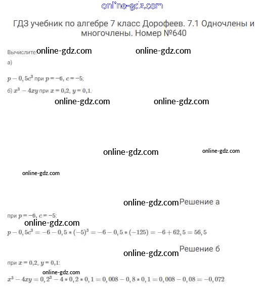 Готовые домашние задания по Алгебре за 7 класс Учебник Дорофеев, Суворова Академический школьный учебник 2020 - Упражнения 640