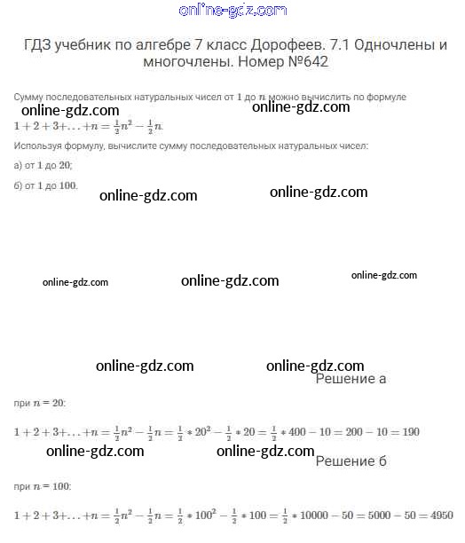 Готовые домашние задания по Алгебре за 7 класс Учебник Дорофеев, Суворова Академический школьный учебник 2020 - Упражнения 642