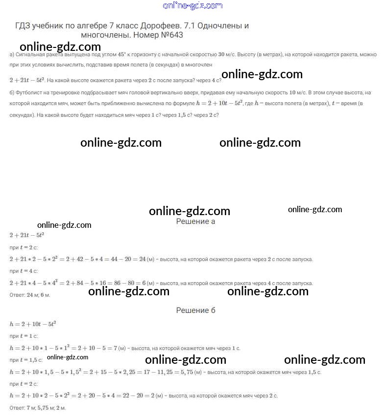 Готовые домашние задания по Алгебре за 7 класс Учебник Дорофеев, Суворова Академический школьный учебник 2020 - Упражнения 643