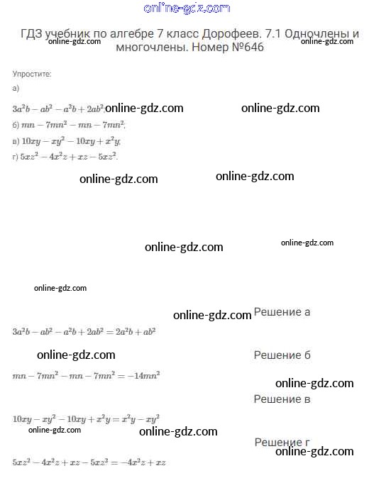 Готовые домашние задания по Алгебре за 7 класс Учебник Дорофеев, Суворова Академический школьный учебник 2020 - Упражнения 646