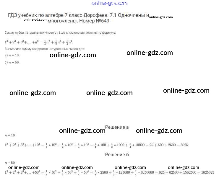Готовые домашние задания по Алгебре за 7 класс Учебник Дорофеев, Суворова Академический школьный учебник 2020 - Упражнения 649