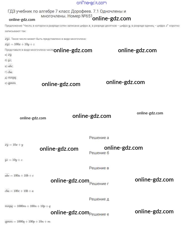 Готовые домашние задания по Алгебре за 7 класс Учебник Дорофеев, Суворова Академический школьный учебник 2020 - Упражнения 651