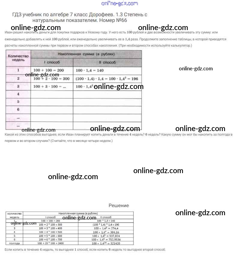 Готовые домашние задания по Алгебре за 7 класс Учебник Дорофеев, Суворова Академический школьный учебник 2020 - Упражнения 66