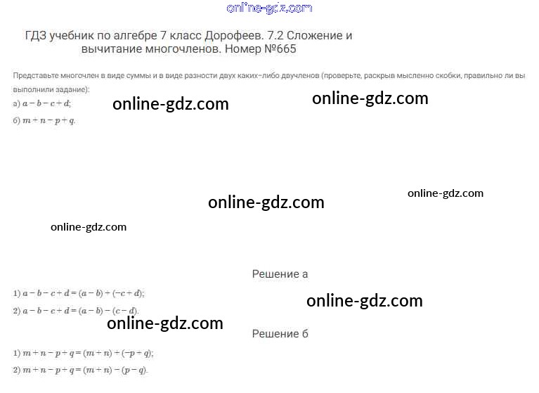 Готовые домашние задания по Алгебре за 7 класс Учебник Дорофеев, Суворова Академический школьный учебник 2020 - Упражнения 665