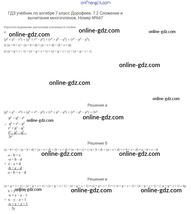 Готовые домашние задания по Алгебре за 7 класс Учебник Дорофеев, Суворова Академический школьный учебник 2020 - Упражнения 667
