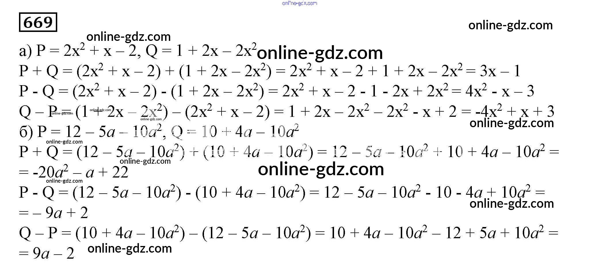 Готовые домашние задания по Алгебре за 7 класс Учебник Дорофеев, Суворова Академический школьный учебник 2020 - Упражнения 669