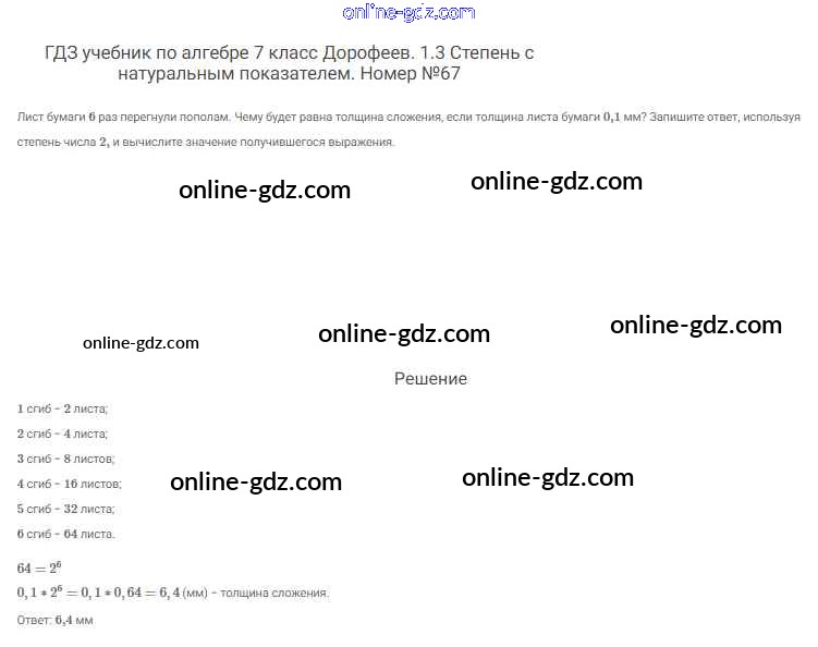 Готовые домашние задания по Алгебре за 7 класс Учебник Дорофеев, Суворова Академический школьный учебник 2020 - Упражнения 67