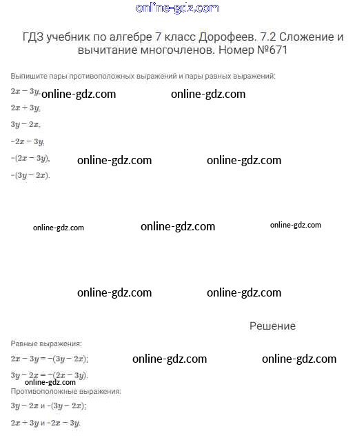 Готовые домашние задания по Алгебре за 7 класс Учебник Дорофеев, Суворова Академический школьный учебник 2020 - Упражнения 671