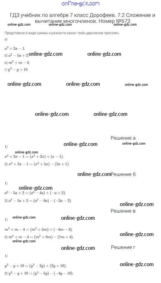 Готовые домашние задания по Алгебре за 7 класс Учебник Дорофеев, Суворова Академический школьный учебник 2020 - Упражнения 673