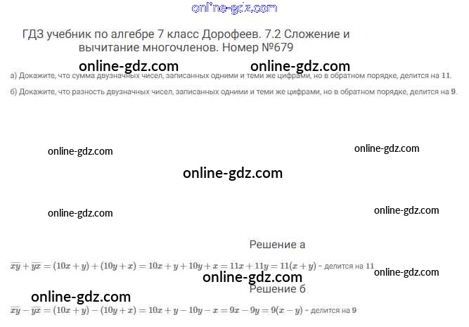 Готовые домашние задания по Алгебре за 7 класс Учебник Дорофеев, Суворова Академический школьный учебник 2020 - Упражнения 679