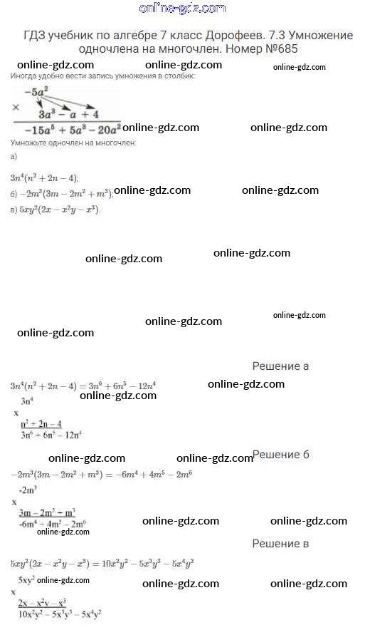 Готовые домашние задания по Алгебре за 7 класс Учебник Дорофеев, Суворова Академический школьный учебник 2020 - Упражнения 685