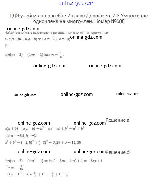 Готовые домашние задания по Алгебре за 7 класс Учебник Дорофеев, Суворова Академический школьный учебник 2020 - Упражнения 688