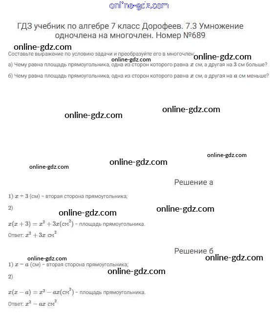Готовые домашние задания по Алгебре за 7 класс Учебник Дорофеев, Суворова Академический школьный учебник 2020 - Упражнения 689