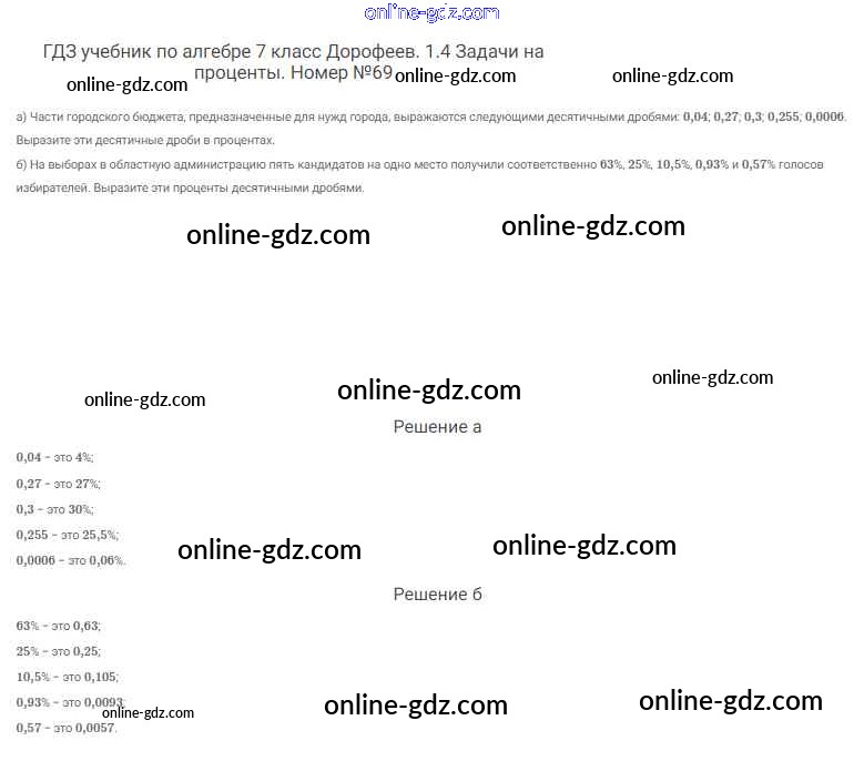 Готовые домашние задания по Алгебре за 7 класс Учебник Дорофеев, Суворова Академический школьный учебник 2020 - Упражнения 69
