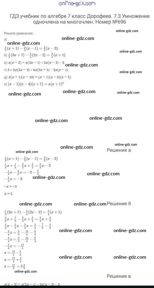 Готовые домашние задания по Алгебре за 7 класс Учебник Дорофеев, Суворова Академический школьный учебник 2020 - Упражнения 696