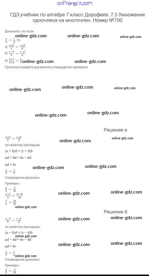 Готовые домашние задания по Алгебре за 7 класс Учебник Дорофеев, Суворова Академический школьный учебник 2020 - Упражнения 700