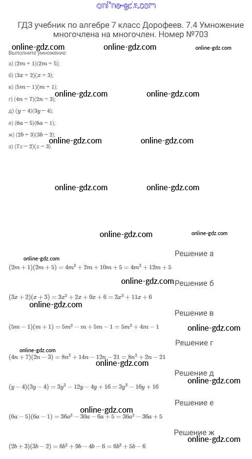 Готовые домашние задания по Алгебре за 7 класс Учебник Дорофеев, Суворова Академический школьный учебник 2020 - Упражнения 703