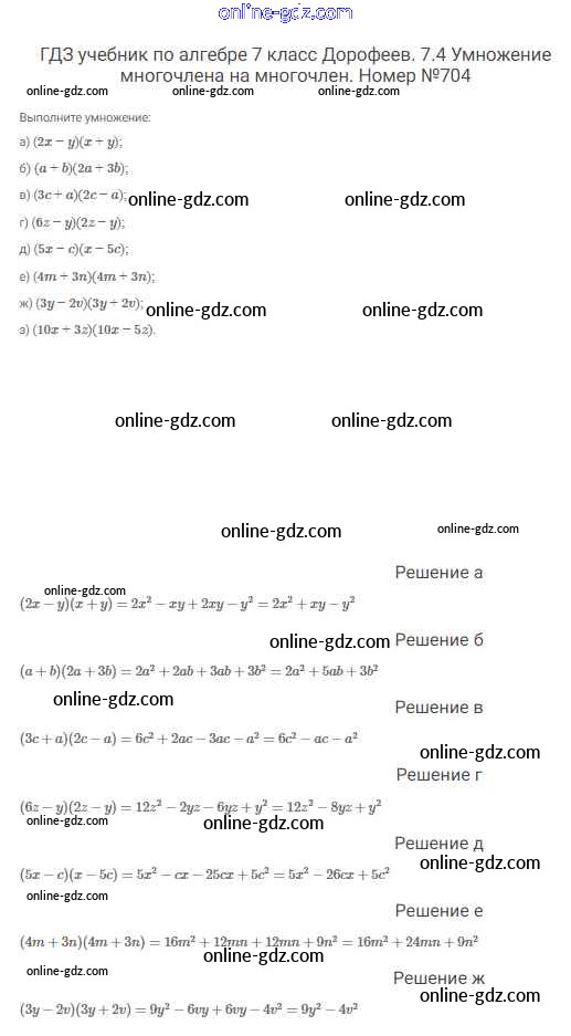 Готовые домашние задания по Алгебре за 7 класс Учебник Дорофеев, Суворова Академический школьный учебник 2020 - Упражнения 704