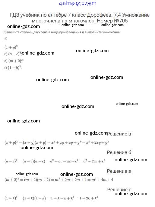 Готовые домашние задания по Алгебре за 7 класс Учебник Дорофеев, Суворова Академический школьный учебник 2020 - Упражнения 705