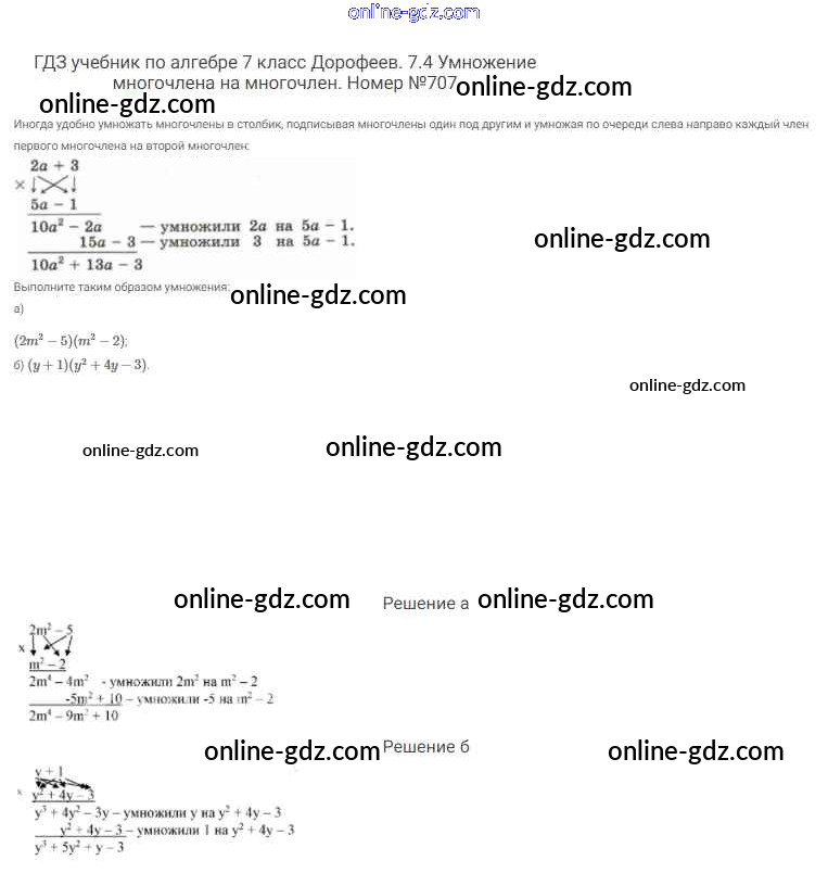 Готовые домашние задания по Алгебре за 7 класс Учебник Дорофеев, Суворова Академический школьный учебник 2020 - Упражнения 707
