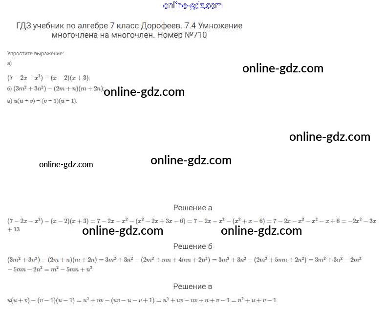 Готовые домашние задания по Алгебре за 7 класс Учебник Дорофеев, Суворова Академический школьный учебник 2020 - Упражнения 710