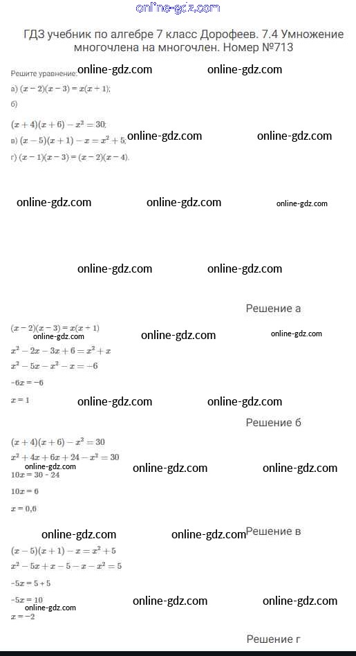 Готовые домашние задания по Алгебре за 7 класс Учебник Дорофеев, Суворова Академический школьный учебник 2020 - Упражнения 713
