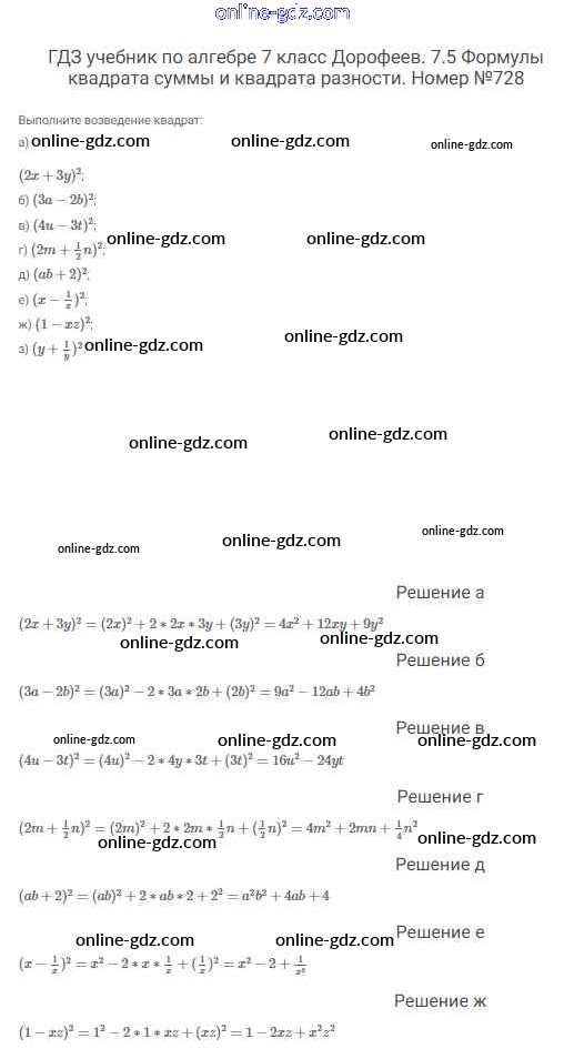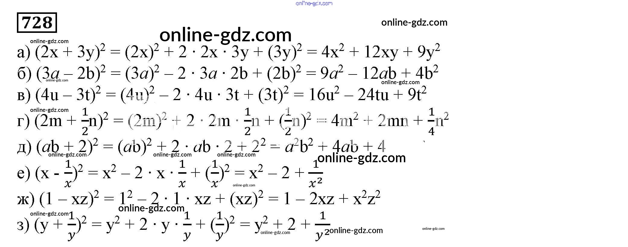 Готовые домашние задания по Алгебре за 7 класс Учебник Дорофеев, Суворова Академический школьный учебник 2020 - Упражнения 728
