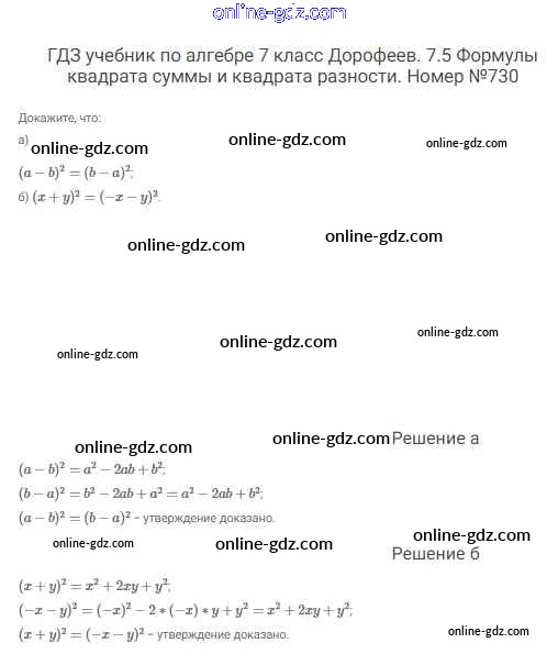 Готовые домашние задания по Алгебре за 7 класс Учебник Дорофеев, Суворова Академический школьный учебник 2020 - Упражнения 730