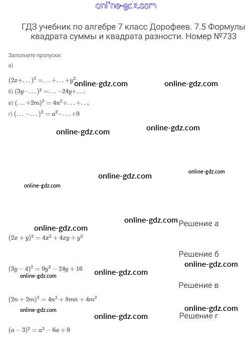 Готовые домашние задания по Алгебре за 7 класс Учебник Дорофеев, Суворова Академический школьный учебник 2020 - Упражнения 733