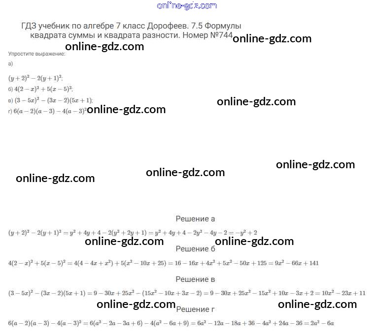 Готовые домашние задания по Алгебре за 7 класс Учебник Дорофеев, Суворова Академический школьный учебник 2020 - Упражнения 744
