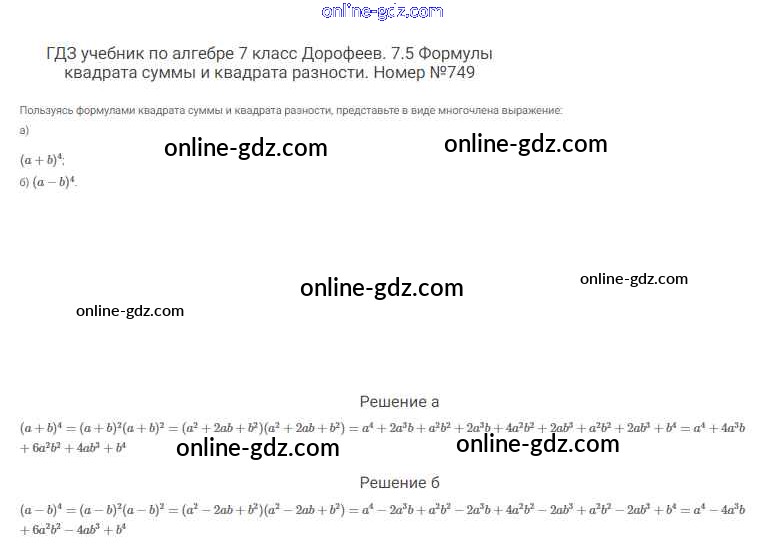Готовые домашние задания по Алгебре за 7 класс Учебник Дорофеев, Суворова Академический школьный учебник 2020 - Упражнения 749