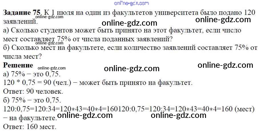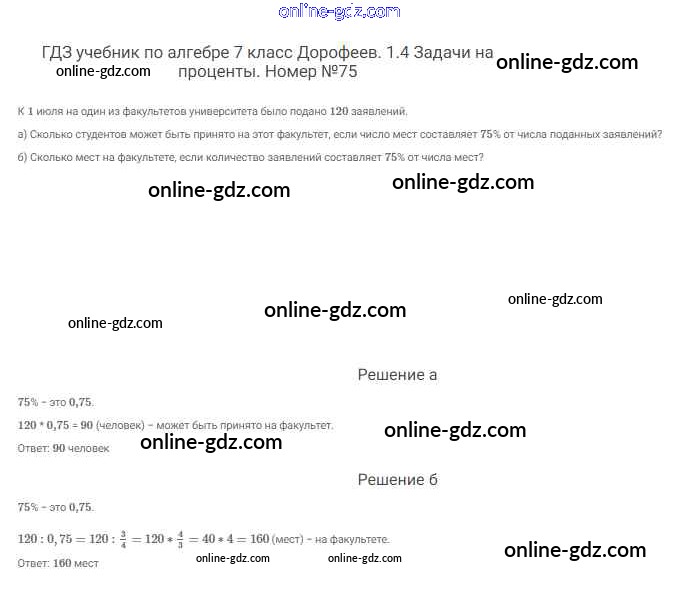 Готовые домашние задания по Алгебре за 7 класс Учебник Дорофеев, Суворова Академический школьный учебник 2020 - Упражнения 75