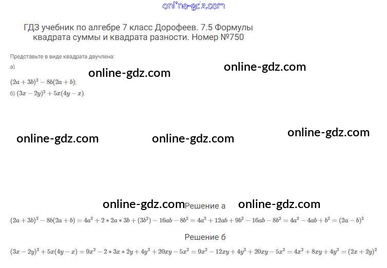 Готовые домашние задания по Алгебре за 7 класс Учебник Дорофеев, Суворова Академический школьный учебник 2020 - Упражнения 750