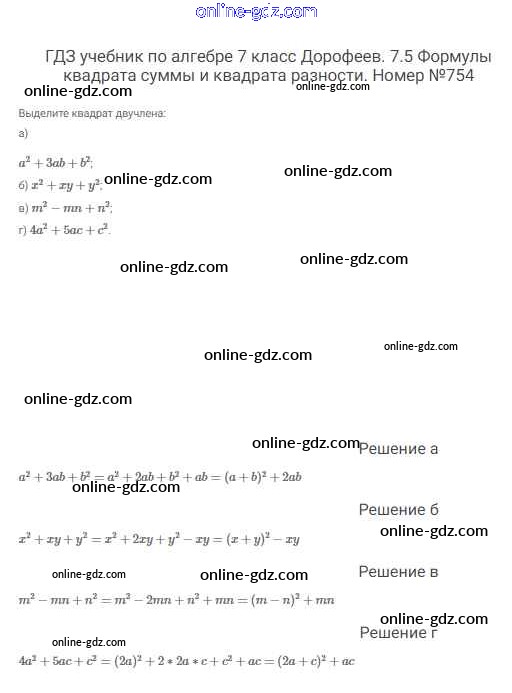 Готовые домашние задания по Алгебре за 7 класс Учебник Дорофеев, Суворова Академический школьный учебник 2020 - Упражнения 754