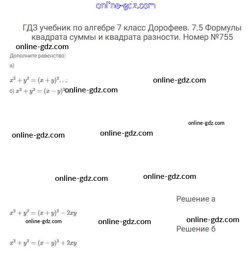 Готовые домашние задания по Алгебре за 7 класс Учебник Дорофеев, Суворова Академический школьный учебник 2020 - Упражнения 755