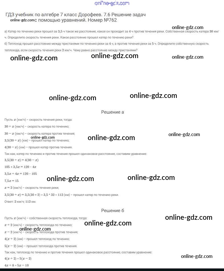 Готовые домашние задания по Алгебре за 7 класс Учебник Дорофеев, Суворова Академический школьный учебник 2020 - Упражнения 762